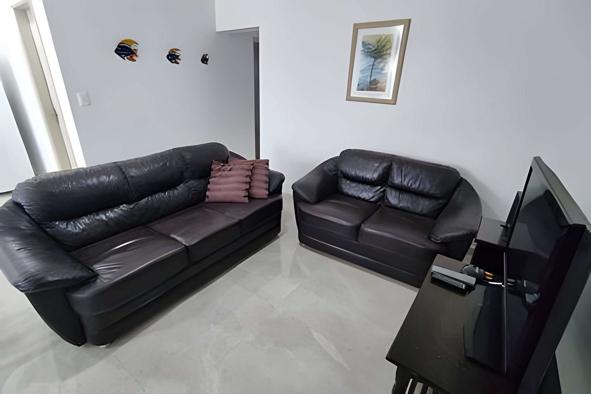 The apartment has two bedrooms, balcony, living/TV room, dining room and kitchen.