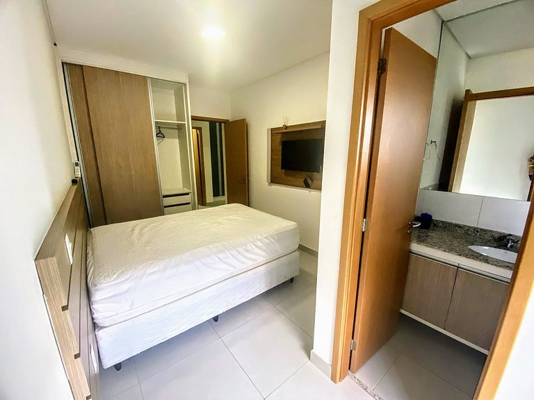 O apartamento tem duas suítes (com ar-condicionado), lavabo, varanda espaçosa com churrasqueira, sala de estar/tv e sala de jantar e cozinha. (ar-condicionado somente nos quartos)